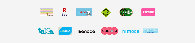 但し、クレジットカード・電子マネーは下記のもののみ使用可能です。使用できない場合は現金でお支払いください。